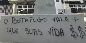 Pixações contra o próprio John Textor (‘John Textor c*zão) e também cobranças por comprometimento, ética e respeito dentro do clube foram vistas e registradas.