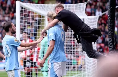Pep Guardiola, ausente devido a cirurgia nas costas, viu sua equipe chegar a 200 vitórias na Premier League sob sua era. Haaland marcou após perder pênalti, celebrando sua cabeçada junto a um entusiasta torcedor que invadiu o campo.